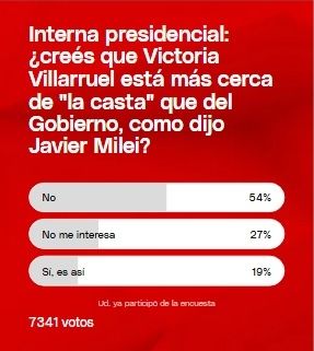 Interesante la encuesta en adhesión para participar y en sus conclusiones. Victoria no es percibida como más cercana a la casta que al gobierno ni interrelacionando con el círculo rojo.