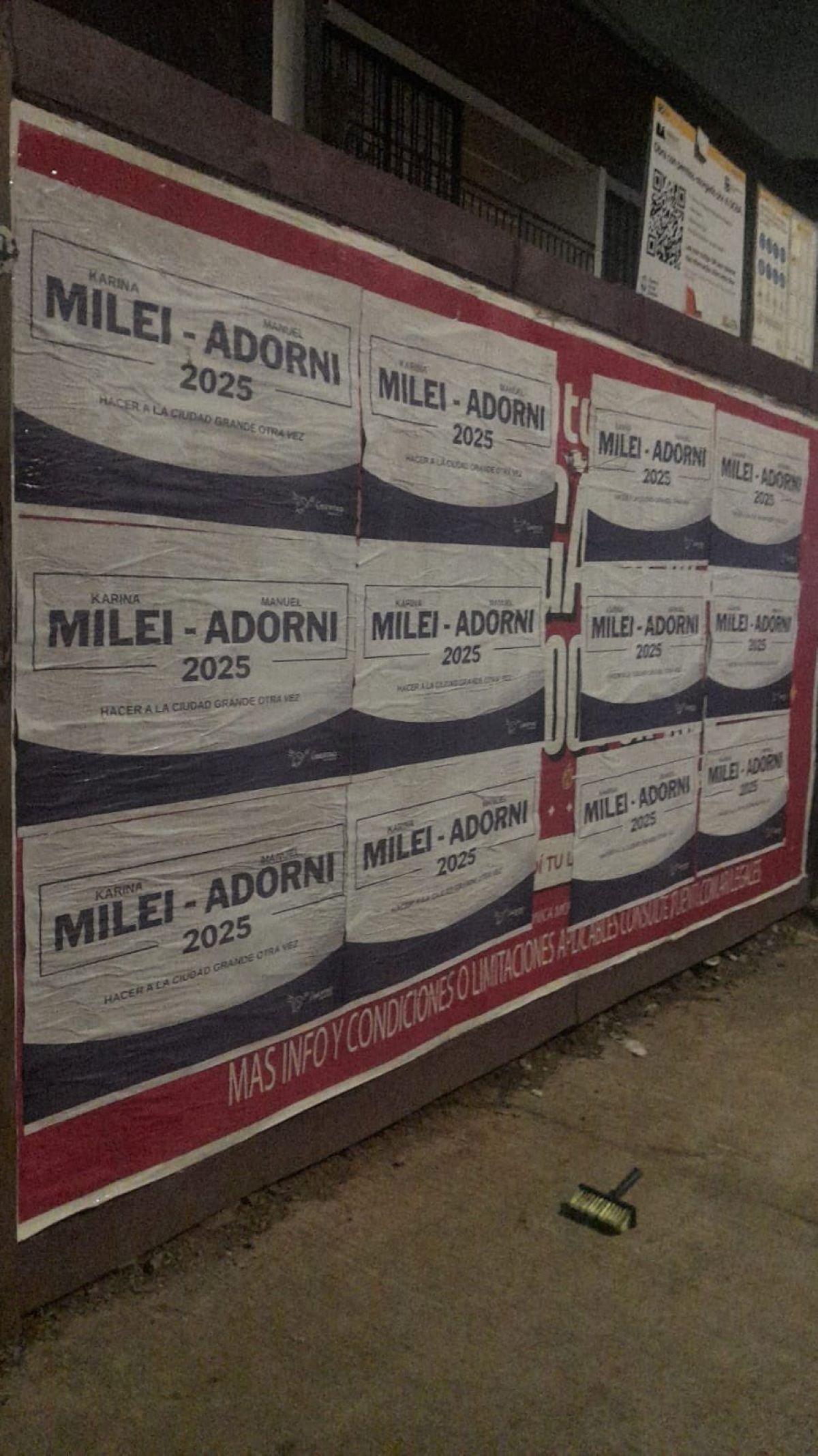 En paralelo, también se vieron en algunas paredes porteñas otros afiches que proponen "Karina Milei y Manuel Adorni" como cabeza de lista para la Ciudad de Buenos Aires con el lema "hacer la Ciudad grande otra vez".