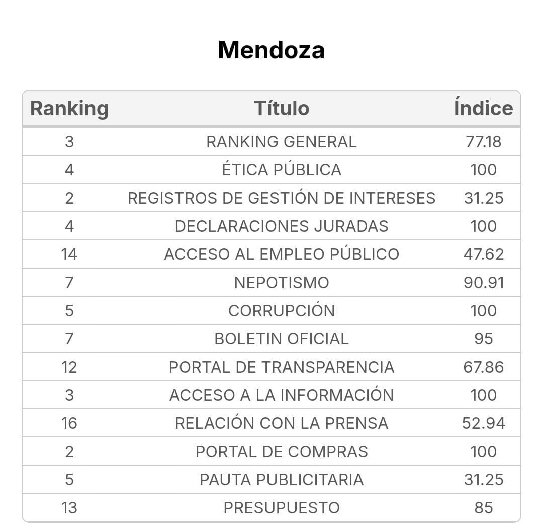 El lugar que ocupa Mendoza en el Índice de Transparencia nacional