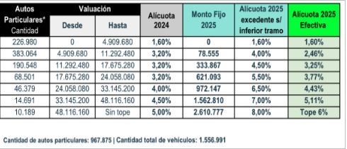 ? El 81% del padrón (1.265.858 vehículos) tendrán una alícuota efectiva menor o igual a la actual durante el año 2025.