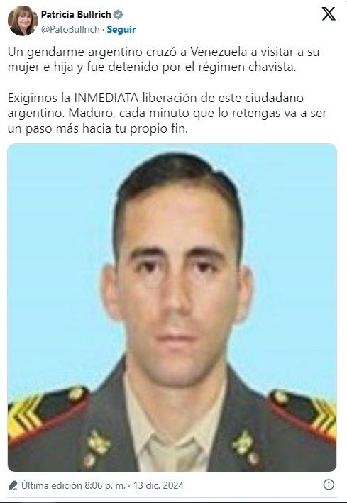 La hermana del suboficial, Daiana Gallo, precisó que el viaje comenzó el sábado 7 de diciembre y que había llegado al territorio bolivariano al día siguiente. Las fuerzas chavistas lo capturaron con el argumento de que realizaba tareas de espionaje, según detallaron en el Gobierno.