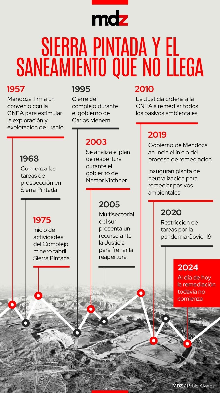 Hubo movimientos en ese sentido en los últimos meses, para actualizar cateos y averiguar el potencial. Mendoza también tiene la planta de procesos Sierra Pintada, donde están almacenados los pasivos ambientales de la época de la producción y también desechos traídos de Dioxitec, que son parte del mal manejo minero de pasado. El plan de remediación, que incluye la puesta en funcionamiento de la planta, no avanzó más allá de los diagnósticos. En el horizonte de la Nación está la reapertura de la mina, una idea que comparte con el plan Nuclear lanzado por Néstor Kirchner en 2004 y que Mendoza le puso freno vía judicial: se determinó que hasta que no se saneen todos los pasivos, no se podía evaluar la reapertura de la producción. Luego vino la ley 7722 que prohíbe el uso de algunas sustancias en la minería, norma que impide por ahora la lixiviación que se hacía en Sierra Pintada (sí se haría para el saneamiento). El plan incluye el reimpulso de los reactores modulares, como el CAREM. Parte de esa tecnología se desarrolló en Mendoza, particularmente en IMPSA, la empresa que busca ser reprivatizada por Javier Milei y que vive horas decisivas.