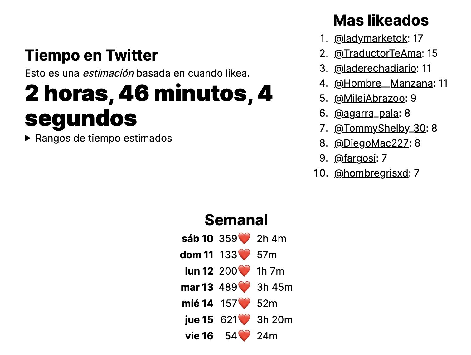 La página fue publicada por el usuario de X @esoesnulo, que creó la página el sábado, en donde se informa "cuántos tweets likeó el presidente en las últimas 24 horas" y se acompaña con un gráfico que muestra las horas del día donde el libertario tuvo mas y menos actividad, cuáles fueron los usuarios con los que más interactuó y el tiempo total que pasó ese día Milei en X.