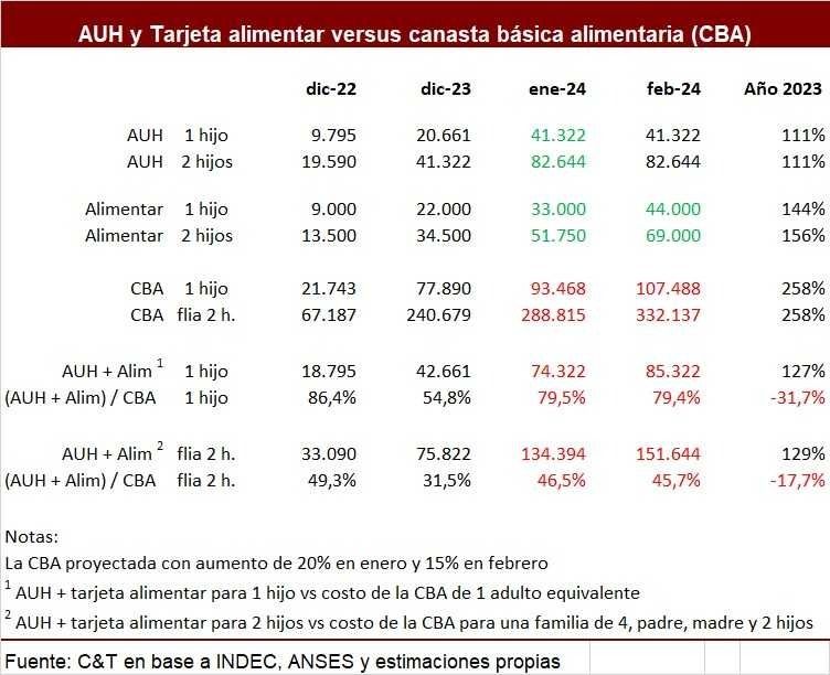 La suma de la AUH y la Tarjeta Alimentar ya cubren hoy el 80% de la canasta básica, ese parámetro que suele estar encadenado con el humor social, donde no existen las vacaciones en el exterior ni el cepo al dólar, y lo que se busca es alimento de primera necesidad para evitar saltear comidas. Sergio Massa llevó ese valor al 54%, lo que explica en parte el fracaso electoral a pesar de la emisión monetaria más grande de las últimas tres décadas. La utilización óptima del dinero del Estado es lo que plantean cerca de Pettovello, da oxígeno al Gobierno para terminar de hacer el ajuste con las calles vacías.