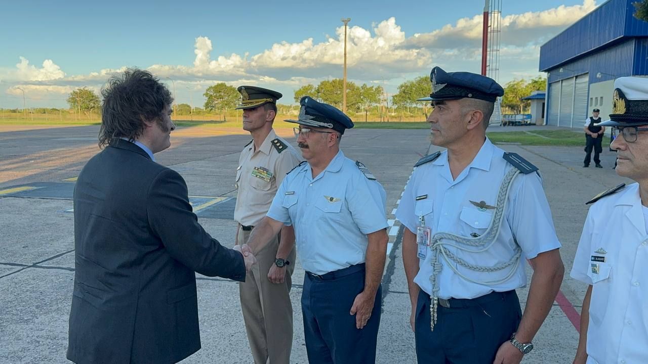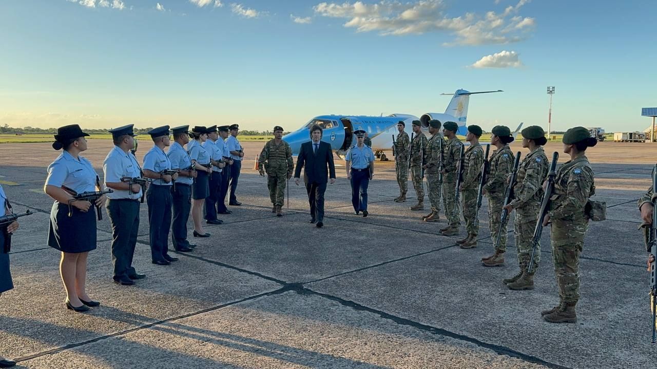 Javier Milei ya se encuentra en Corrientes, donde fue recibido en el Aeropuerto Internacional Doctor Fernando Piragine Niveyro por el gobernador correntino Gustavo Valdés.