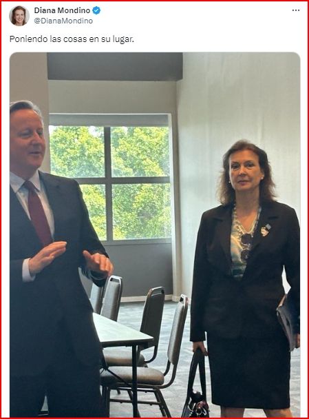 El picante tuit de Diana Mondino tras su reunión con el canciller británico David Cameron en Brasil
