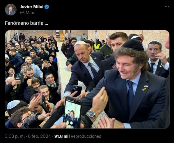 El irónico mensaje de Javier Milei desde Israel: "Fenómeno barrial"