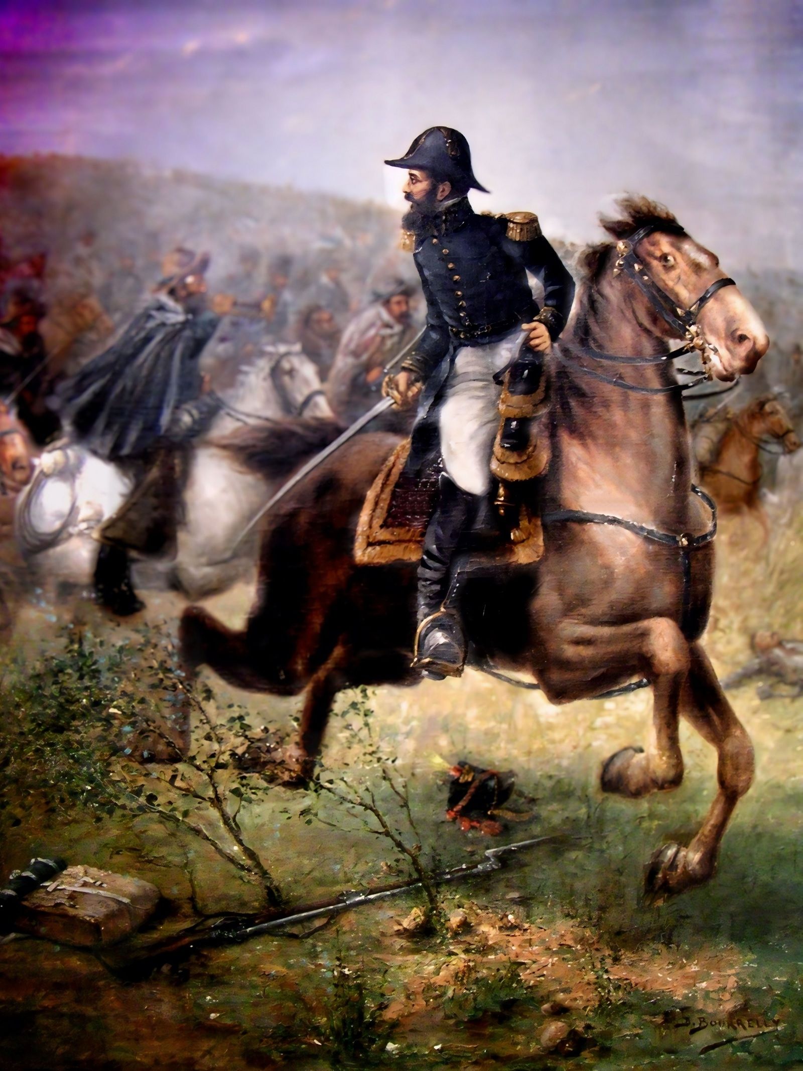José de San Martín (1778-1850). Padre Fundador de la Patria, cuya valentía forjó nuestra independencia. Comandante Supremo del Ejército de los Andes, lideró las hazañas en las batallas de San Lorenzo, Chacabuco y Maipú, logrando la libertad de la Argentina, Chile y el Perú. Fundador del Regimiento de Granaderos a Caballo, su legado es símbolo de sacrificio y entrega por la Patria. San Martín, estratega sin igual y héroe indiscutible, es fuente de orgullo para cada argentino, cuya llama de libertad encendió con honor y gloria.