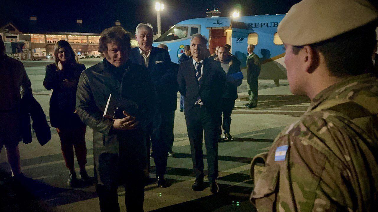Acompañan en su visita a la provincia la secretaria General de Presidencia, Karina Milei, y el vocero presidencial, Manuel Adorni. Milei partió en helicóptero hasta el Llao Llao, donde se espera un importante operativo de seguridad para el viernes a raíz las medidas de fuerza de distintas organizaciones sociales y sindicales.