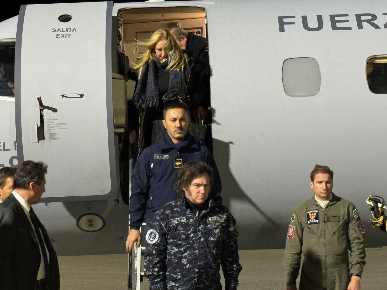 Todos, y un pasaje de 30 personas que incluyó a la secretaria general Karina Milei, el jefe de gabinete Nicolás Posse y el de Interior Guillermo Francos, abordaron un avión Embraer ERJ-140 de reciente incorporación a la Fuerza Aérea Argentina. El vuelo partió a 17.30 desde la plataforma militar del aeropuerto metropolitano. El arribo se demoró ya que, por cuestiones climáticas, tuvieron que hacer escala en Río Gallegos. Se estima que el regreso sea en horas de la madrugada.