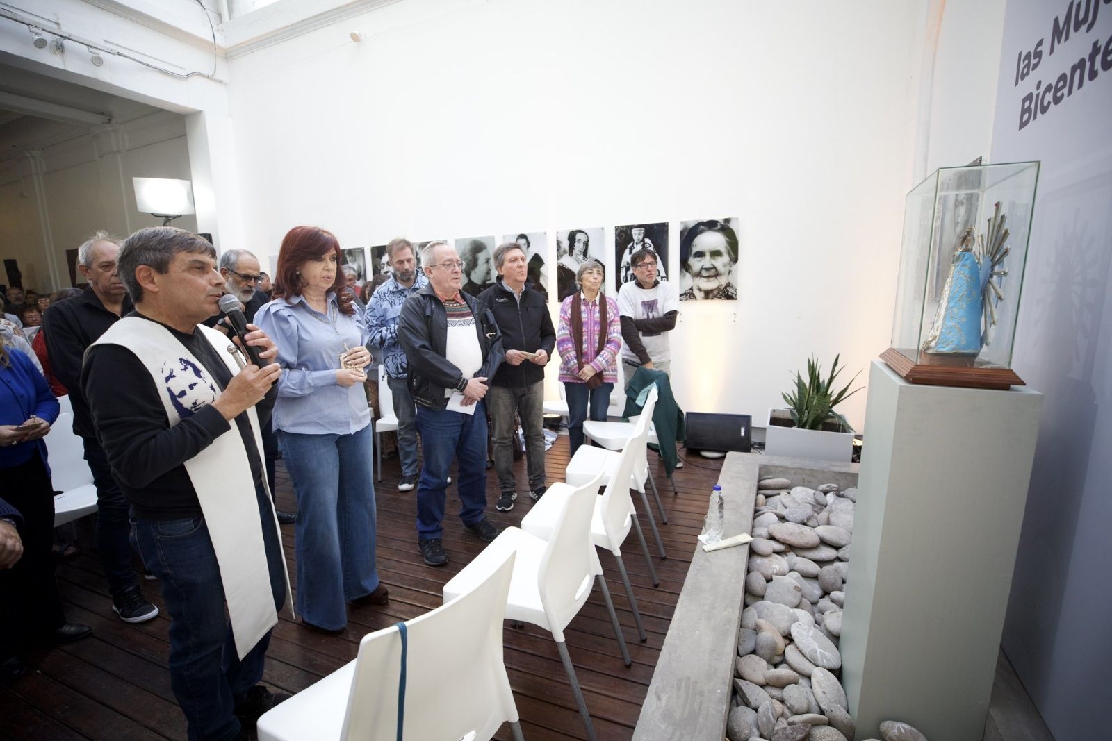 La expresidenta Cristina Fernández de Kirchner participó este sábado de la ceremonia de entronización de la Virgen de Luján en el Instituto Patria a 50 años de la muerte del Padre Mugica.