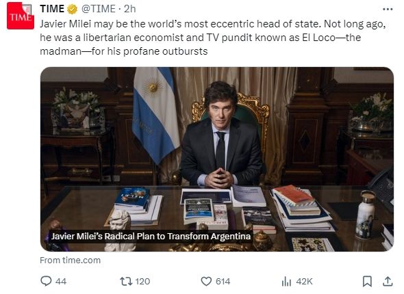 El presidente Milei mostró uno de los libros de historietas del dibujante Nik. No es la primera vez que apela a sus obras, suele publicar varias viñetas del autor para publicar en sus redes sociales. Además, tiene una clara cercanía ideológica con Nik, que siempre se mostró en la vereda de en frente al kirchnerismo. La tapa lleva las tres estrellas, en referencia a los mundiales que ganó Argentina.