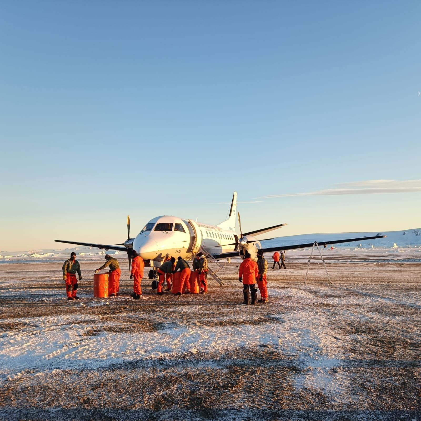 Un avión SAAB 340 de la Fuerza Aérea, matricula T-34, aterrizó por primera vez en la pista reacondicionada de la base antártica Petrel. Es la culminación de un trabajo conjunto entre las tres fuerzas armadas y el liderazgo del saliente comandante Conjunto Antártico, general de brigada Edgar Calandin. El viernes pasado Calandín entregó el comando al comodoro de marina Maximiliano Mangiaterra, en una ceremonia que se llevó a cabo en la sede del Comando Antártico próximo a parque Lezama.