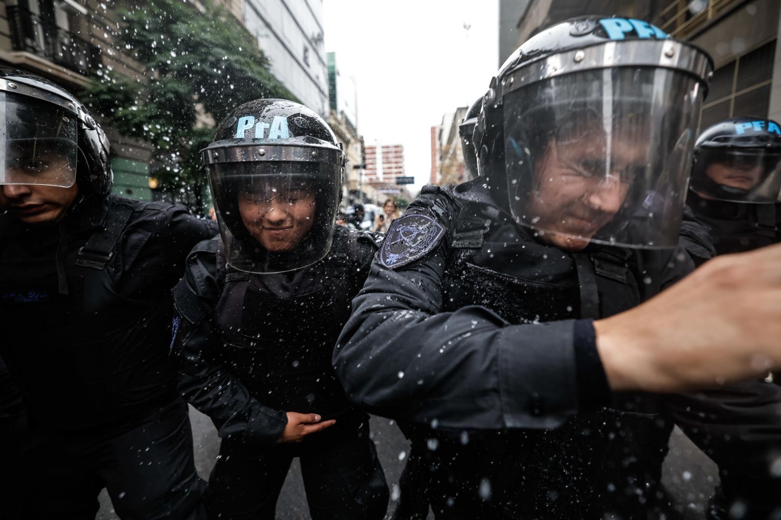 En aplicación del protocolo antidisturbios dispuesto por la ministra de Seguridad, Patricia Bullrich, cientos de agentes policiales se desplegaron en la zona, que fue vallada para impedir el acceso a las puertas del recinto legislativo y mantener sobre las veredas a los manifestantes.