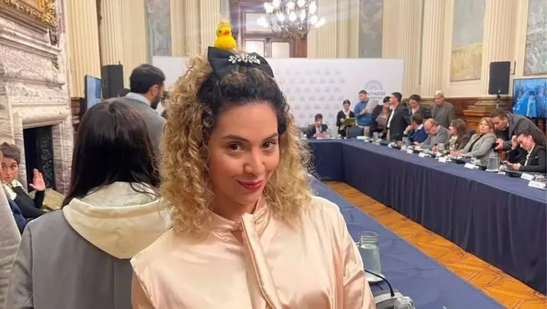 Simbología en su presentación personal de mal gusto: lució en una reunión de comisión en Diputados con un patito sobre su cabeza. Mal gusto kisch al extremo de la ridiculez.