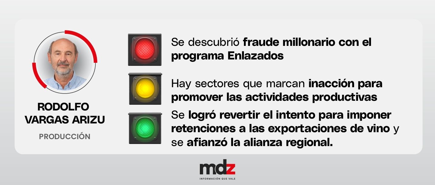 Mientras que Cornejo concentró funciones en algunas áreas, en otras las dividió. Es lo que pasó con Producción, Turismo y ProMendoza, que están por separado. Las tres áreas son de las más golpeadas por la recesión y la retracción. El Ministerio conducido por Rodolfo Vargas Arizu es el primero en el que se ensaya la participación del sector privado en la gestión política. Los políticos de la vieja escuela cuestionan el ritmo. También fue ese Ministerio donde se vivió el primer hecho de corrupción de la nueva gestión, aunque fue detectado y denunciado por las mismas autoridades: el fraude y otras irregularidades con el programa Enlazados. En Turismo Mendoza tiene los peores números de los últimos años, aunque es más por herencia de gestión y por realidad económica.
