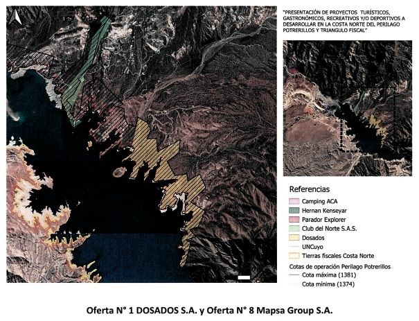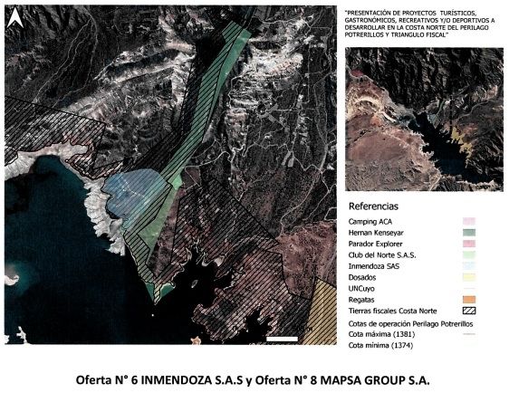 Los adjudicatarios resultaron ser cuatro empresas privadas y la Universidad Nacional de Cuyo. Los elegidos son DOSADOS SA, Domos Potrerillos SAS, INMENDOZA SAS, MAPSA GROUP SA y la UNCuyo, cada uno de los cuales desarrollará una explotación particular de la costa norte del dique Potrerillos.