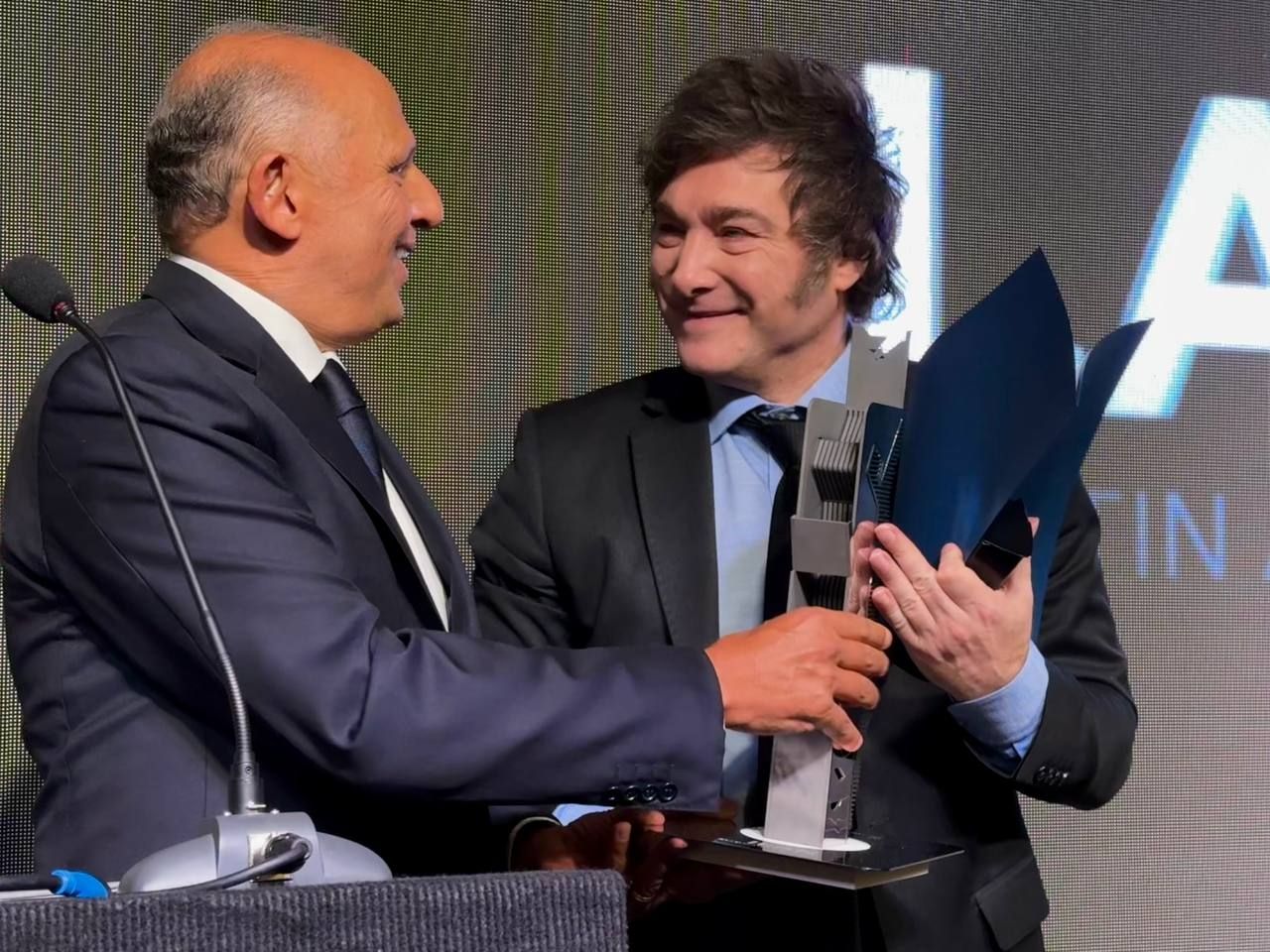 El presidente Javier Milei participó este domingo de un evento organizado por la fundación ILAN (Israel Latin America Network), una entidad fundada por el empresario Isaac Assa, quien condecoró al mandatario por su aporte a la "innovación política" y aprovechó para volver a diferenciar de la gestión kirchnerista.