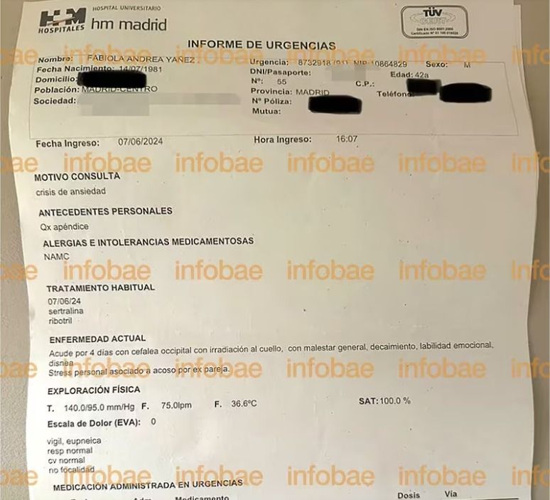 La última vez que el expresidente Alberto Fernández visitó en Madrid a Fabiola Yañez, a mediados de este año, ella debió ser hospitalizada. Así consta en un informe de urgencias del Hospital Universitario al que accedió y que difundió el sitio periodístico Infobae.