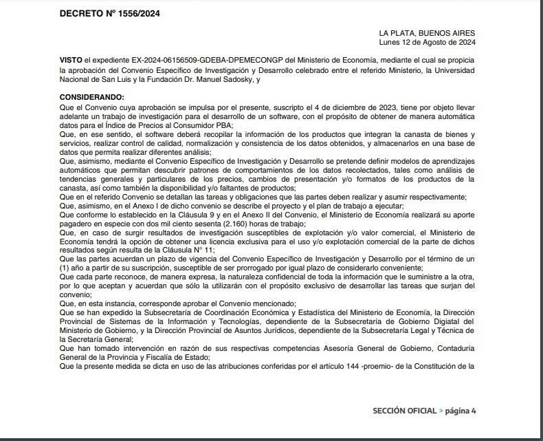 A fines de la semana pasada, se publicó en el Boletín Oficial de la provincia de Buenos Aires un convenio firmado en diciembre del con la Universidad Nacional de San Luis y la Fundación Manuel Sadosky. El mismo tiene como objetivo la creación de un software con Inteligencia Artificial para que el Gobierno de Axel Kicillof pueda tener un "Indec propio" para realizar una medición de la inflación en la provincia.