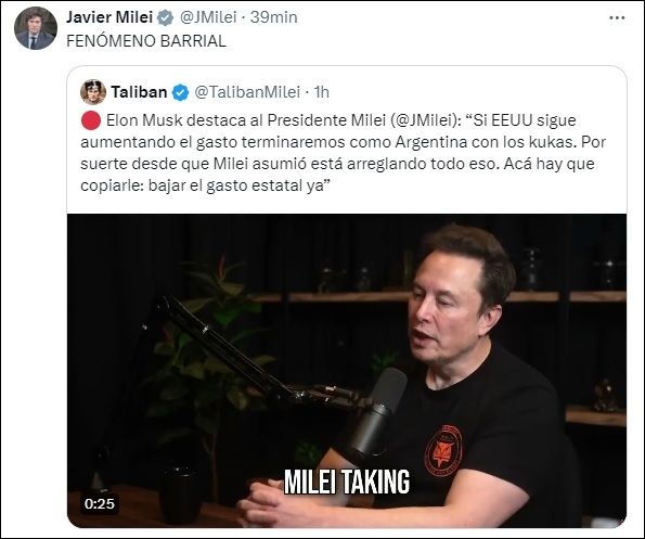 Por supuesto el mandatario argentino no tardó en compartir el video en su cuenta de X.