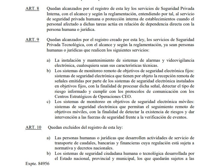 El proyecto señala en su artículo 16 sobre exclusiones de habilitación que "las siguientes personas jurídicas no podrán ser prestadoras de seguridad privada: a) Asociaciones Civiles, b) Simples Asociaciones, c) Fundaciones, Mutuales y d) Cooperativas, con excepción de las que estén constituidas antes de la vigencia de la presente ley y autorizadas por el registro dependiente del Ministerio de Seguridad y Justicia, podrán seguir prestando el servicio de seguridad privada a la comunidad sólo en los objetivos ya autorizados y/o relacionados, con el alcance y según reglamentación".
