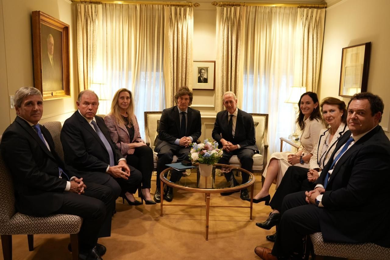 En el encuentro también estuvieron presentes el ministro de Economía, Luis Caputo, la secretaria General de la Presidencia, Karina Milei, el embajador Gerardo Werthein y la canciller Diana Mondino.