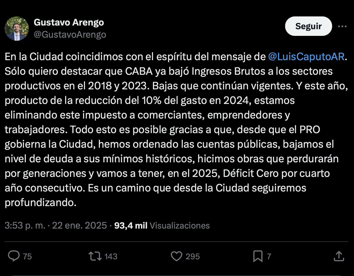 Milei por su parte logró un cambio cultural que, al menos, generó una nueva competencia en administradores serios: la pasión por la baja de impuestos. Allí la carrera la ganó Jorge Macri que, en medio de la pelea que mantiene con la Libertad Avanza en la ciudad, le mando decir a Milei esta semana a través de su ministro de Hacienda y Finanzas, Gustavo Arengo, que el PRO porteño ya habían avanzado en una baja de Ingresos Brutos en el 2018 y 2023, una reducción de 10% del gasto en 2024 y con déficit cero por cuarto año consecutivo.