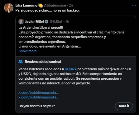 Primero se especuló con que habían jaqueado la cuenta de X del presidente, pero luego la diputada libertaria Lilia Lemoine dijo que se trataba de un posteo real del jefe de Estado.