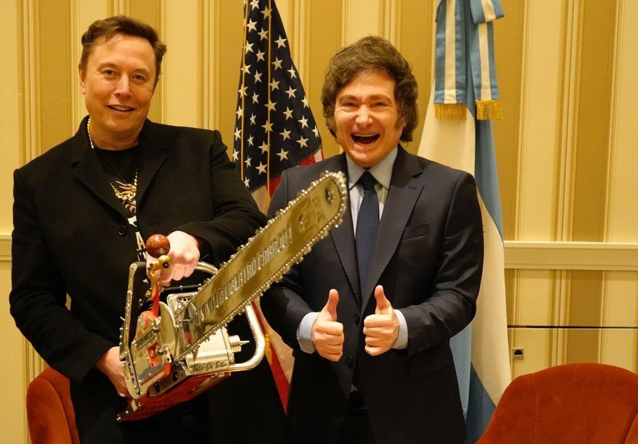 En reiteradas ocasiones, el libertario aseguró que el dueño de Tesla, "X" y SpaceX es un admirador de la gestión libertaria, en especial por el plan de desregulación. En noviembre, sostuvo que su modelo está siendo "copiado" por Estados Unidos y celebró: "Obviamente el 'afuera' y la motosierra son productos de exportación. Son parte de la Marca País".