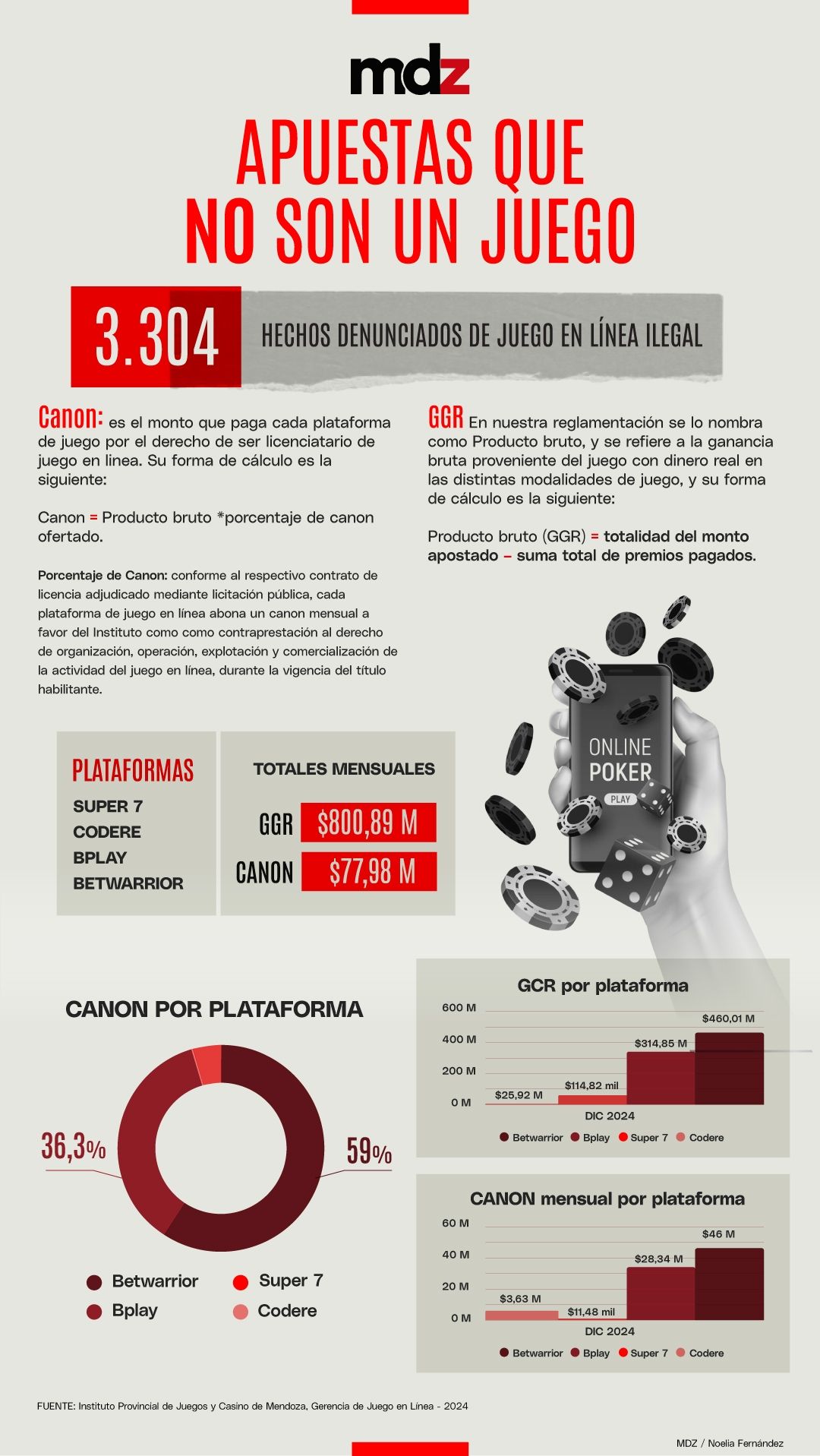 El Gobierno habilitó el juego online con el argumento de regular y combatir la clandestinidad. Cuando se licitó se gestó la cláusula de beneficio para los casinos locales porque, segun explican, habían perdido mucho por la pandemia. En la licitación se les dio 15 puntos extra a quienes se presentaban asociados a una firma local, por lo que era imposible no hacerlo para las páginas de juego. Las empresas pagan un canon que oscila entre el 9 y 14% de los ingresos netos. Las licencias otorgadas dejaron conformes a casi todos, pues la mayoría de los concesionarios estarán prendidos del nuevo negocio. Los empresarios Kristich, Cristóbal López, Daniel Angelici e IVISA están entre los beneficiados. Los socios mendocinos de las empresas de juego no tienen mucho que hacer, pues toda la tecnología y desarrollo lo ponen las empresas especializadas.
