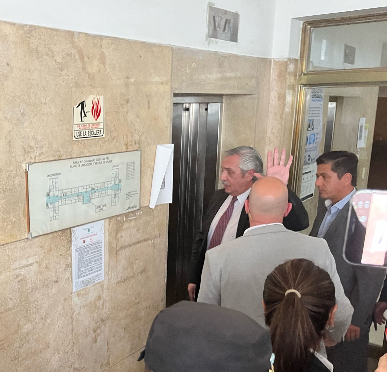 El exmandatario estaba convocado para las 11, pero decidió adelantar su testimonio frente al juez federal Julián Ercoloni e ingresó al juzgado ubicado en el cuarto piso de Comodoro Py a las 10, para luego retirarse a las 11.25, una hora y media después. Rodeado por una atmósfera de tensión, Fernádez saludó con frialidad al magistrado, con quien tuvo un trato escueto.