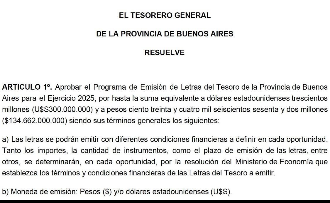 La decisión del gobierno de Axel Kicillof, publicada en el Boletín Oficial bonaerense, por la cual la Tesorería General de la provincia de Buenos Aires, mediante la Resolución 2025-9, aprobó un endeudamiento de hasta 300 millones de dólares (equivalentes a 134.662 millones de pesos), sin pasar por la Legislatura bonaerense, provocó un fuerte rechazo en el arco opositor legislativo que calificó la situación de “grave” y de “dudosa legalidad”.
