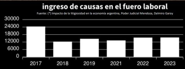 “Más allá de la mejora relativa mostrada en el ingreso de las causas laborales, respecto de los litigios realizados en contra de las ART, Mendoza presenta un claro problema cuando se la compara con el resto de las jurisdicciones. Desde hace varios años, Mendoza se ubica entre las provincias con más litigios por cantidad de trabajadores”, expresa el estudio.