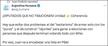 "Hay que evitar el sectarismo, que es armar grupos selectos, de los buenos, lindos, puros. Pero también tenemos otro problema que es armar rejuntes", dijo Grabois quien fue competidor interno de Sergio Massa en 2023 por la Presidencia de la Nación.
