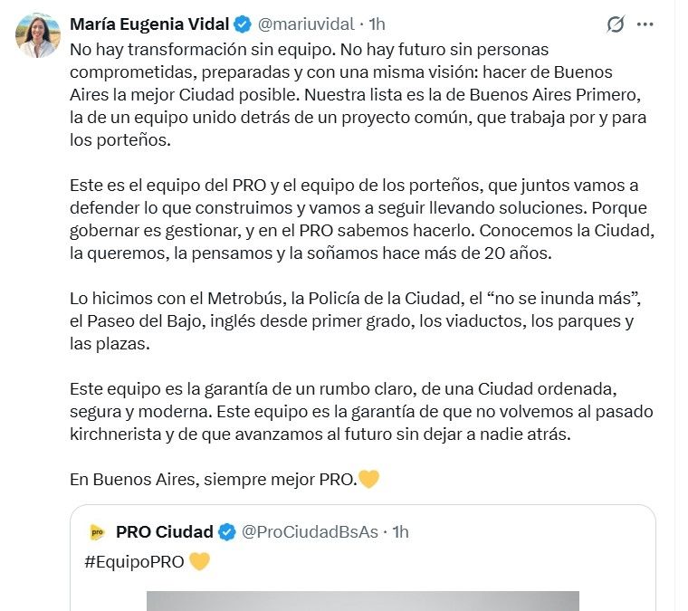 Por parte de Vidal, en 24 horas hizo dos apariciones en medios, que puede entenderse como una concreta tracción del PRO. El líder del partido intentó convencerla durante mucho tiempo para que se lance como legisladora, pero ella prefiere continuar escalando en su carrera y, mientras se define el panorama porteño, mantenerse en el rol de jefa de campaña.