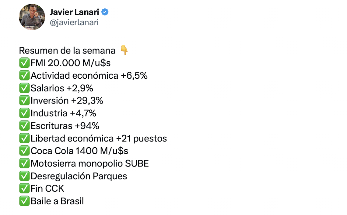 Va a ser una noticia que Milei va a celebrar, porque marca un éxito a pesar del contundente ajuste que se viene realizando. Pero que para que se consolide necesita atravesar las tempestades económicas. Si lo logra, dejará en una situación mucho más complicada a los otros dos que vienen sufriendo: Cristina y Macri.