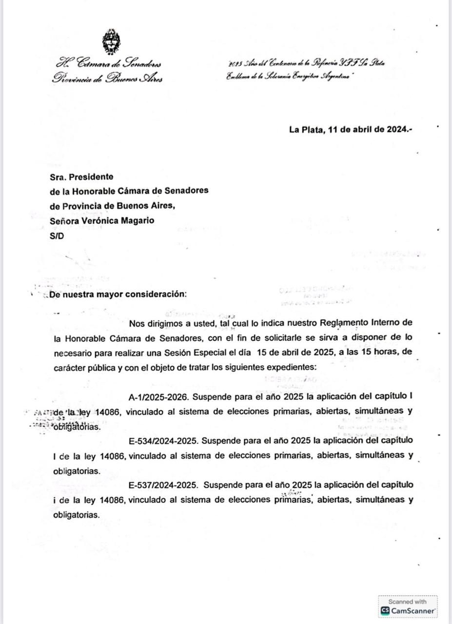 Mientras que en el Senado los legisladores de la oposición, el viernes pasado, todos unidos pidieron por mesa de entradas a la vicegobernadora Verónica Magario que convoque a una Sesión Especial para suspender las PASO.