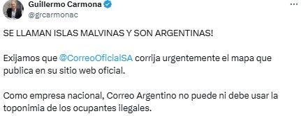 En la cuenta de X oficial del Correo Argentino detallaron que "esta situación fue producto de un error involuntario vinculado al proveedor externo del servicio cartográfico. Ante ello, se procedió de forma inmediata a desactivar el mapa correspondiente y a iniciar las gestiones necesarias para su corrección".