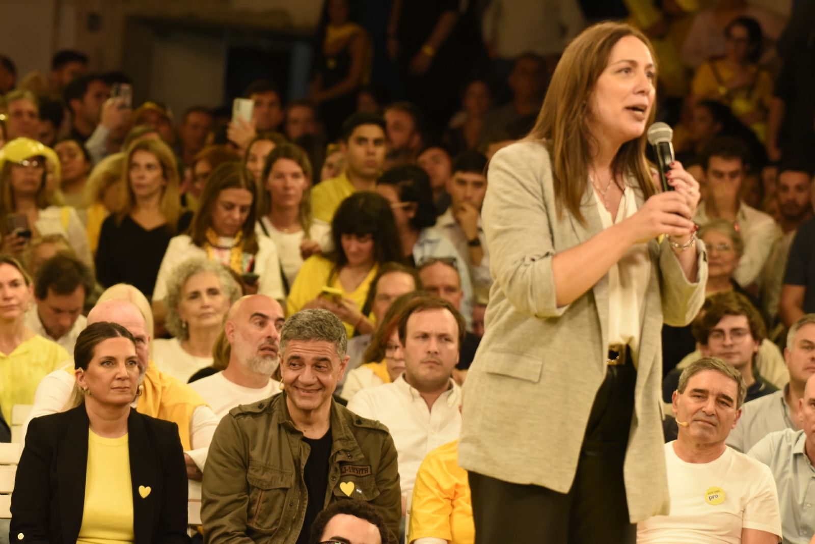 Al comienzo del acto, Darío Nieto y Rocío Figueroa oficiaron de presentadores. “¿Cómo estamos para el domingo? ¿Vamos a ganar?“, levantaron a la militancia al comenzar el acto. También agradecieron a los ”históricos" presentes en el acto, como la exvicepresidenta Gabriela Michetti; la intendenta de Vicente López, Soledad Martínez; y el diputado bonaerense Cristian Ritondo.
