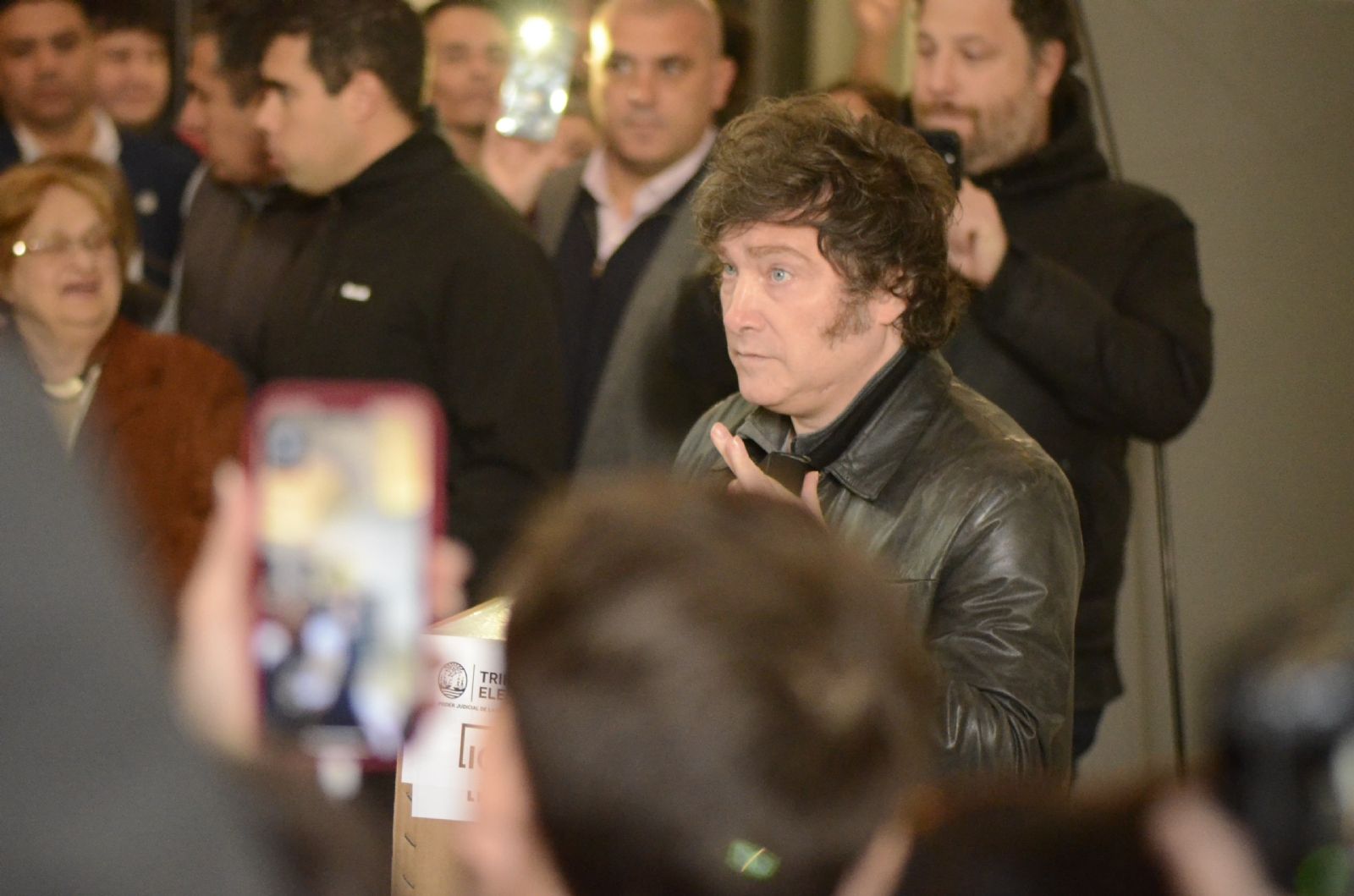 18.17 - Llegó Javier Milei al búnker de La Libertad Avanza