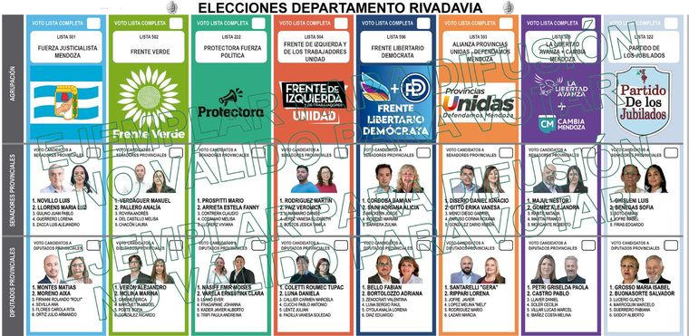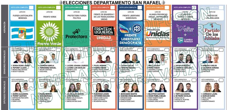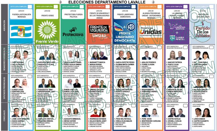 La primera boleta corresponde exclusivamente a la elección de Diputados Nacionales, documento que ya fue distribuido previamente a las autoridades electorales departamentales. La segunda boleta estará destinada a los cargos de nivel provincial y municipal. En esta papeleta los electores podrán elegir senadores provinciales, diputados provinciales y concejales municipales según corresponda a cada jurisdicción territorial.