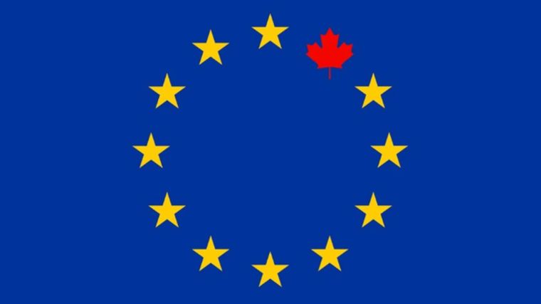 Incluso más: ya está en circulación un ícono gráfico de la bandera de la Unión Europea intervenida con la clásica hoja de arce de la enseña canadiense.