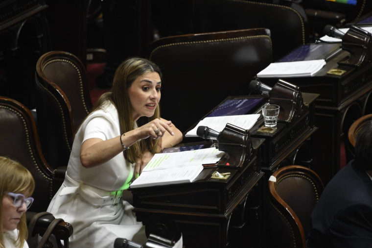 La diputada Julia Strada durante la sesión de esta tarde en la Cámara Baja donde se trata la media sanción de los proyectos de Presupuesto 2026, Ley de Inocencia Fiscal y la regla fiscal y monetaria.