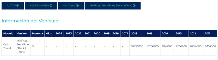 Otro ejemplo es el de un Gol Trend modelo 2015 base y de 5 puertas, está valuado en $10,2 millones, según los datos de Acara, por lo que corresponde establecer la alícuota de Categoría B (alícuota de 1,6%). De esta forma, pagará un Impuesto Automotor anual de $163.000 -sin descuentos-.