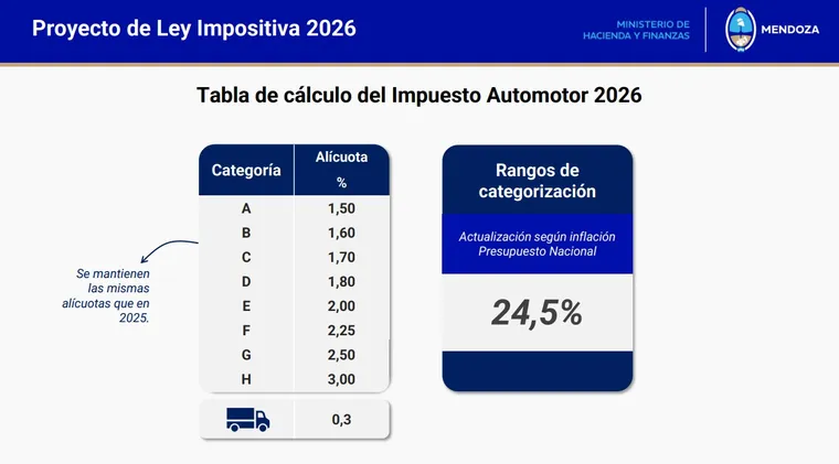 La alícuota, que será la misma que este 2025, arrancará en un 1,5% para vehículos de hasta $7,1 millones; y será progresivo hasta llegar al 3% de alícuota con vehículos superiores a los $87,5 millones.