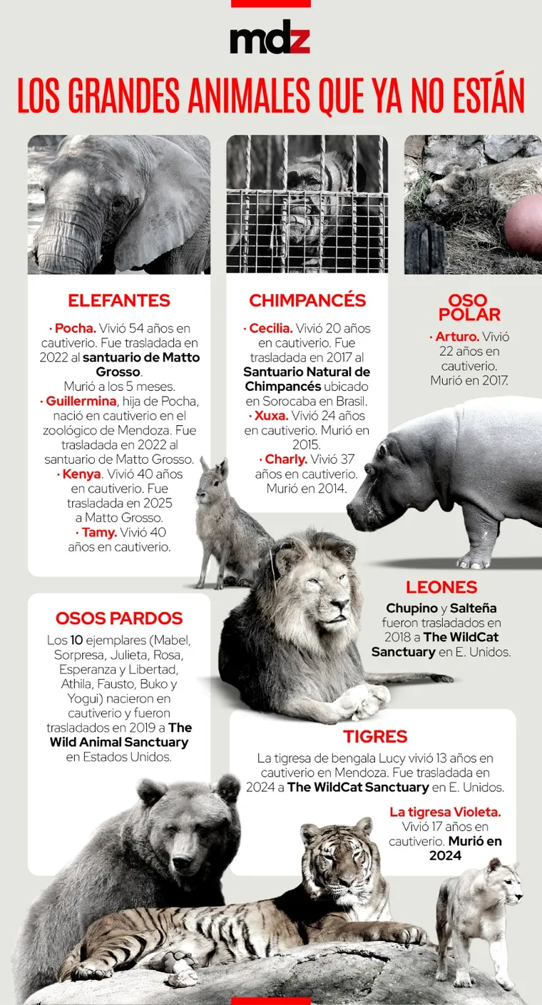 MDZ Online realizó un extenso recorrido en julio respecto a los ejemplares que murieron en cautiverio y los que trasladaron a reservas y santuarios