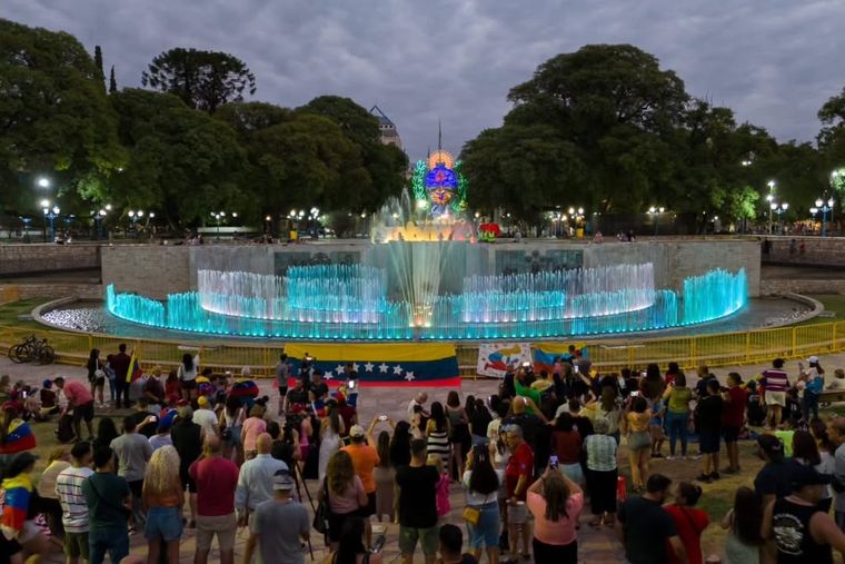 La Ciudad de Mendoza se plegó a estos festejos a través de un homenaje, adornando con los colores de la bandera de Venezuela la fuente central de la Plaza Independencia.