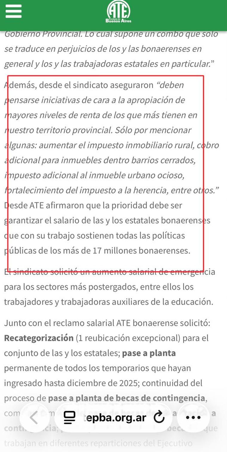 Obviando en su pedido que los sueldos en la provincia de Buenos Aires vienen en caída libre desde la última etapa del gobierno de Juntos por el Cambio, ni hablar de cómo los afecto la inflación del 200% del gobierno de Alberto Fernández. Aunque para ATE, como reza en la misiva, la culpa es toda de los dos años del Gobierno de Javier Milei.