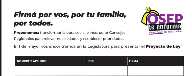 Bajo el hashtag #OSEP te enferma, el SUTE anunció la campaña. El secretario general del gremio, Gustavo Correa, aseguró que: "Vamos a llevar a la Legislatura de Mendoza 100.000 firmas, que acompañen un proyecto de ley que mejore la obra social".